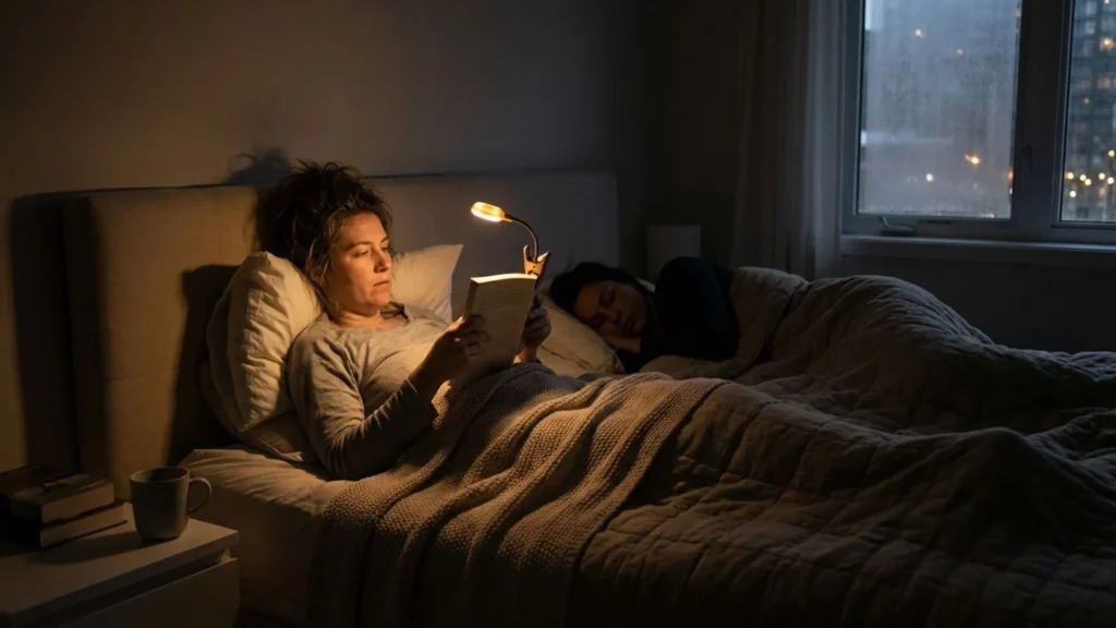 Uma curiosidade relevante: a distância inadequada da luz de leitura na cama pode afetar a qualidade do sono, especialmente se a luz for muito intensa ou estiver mal direcionada, estimulando o cérebro e dificultando o relaxamento.