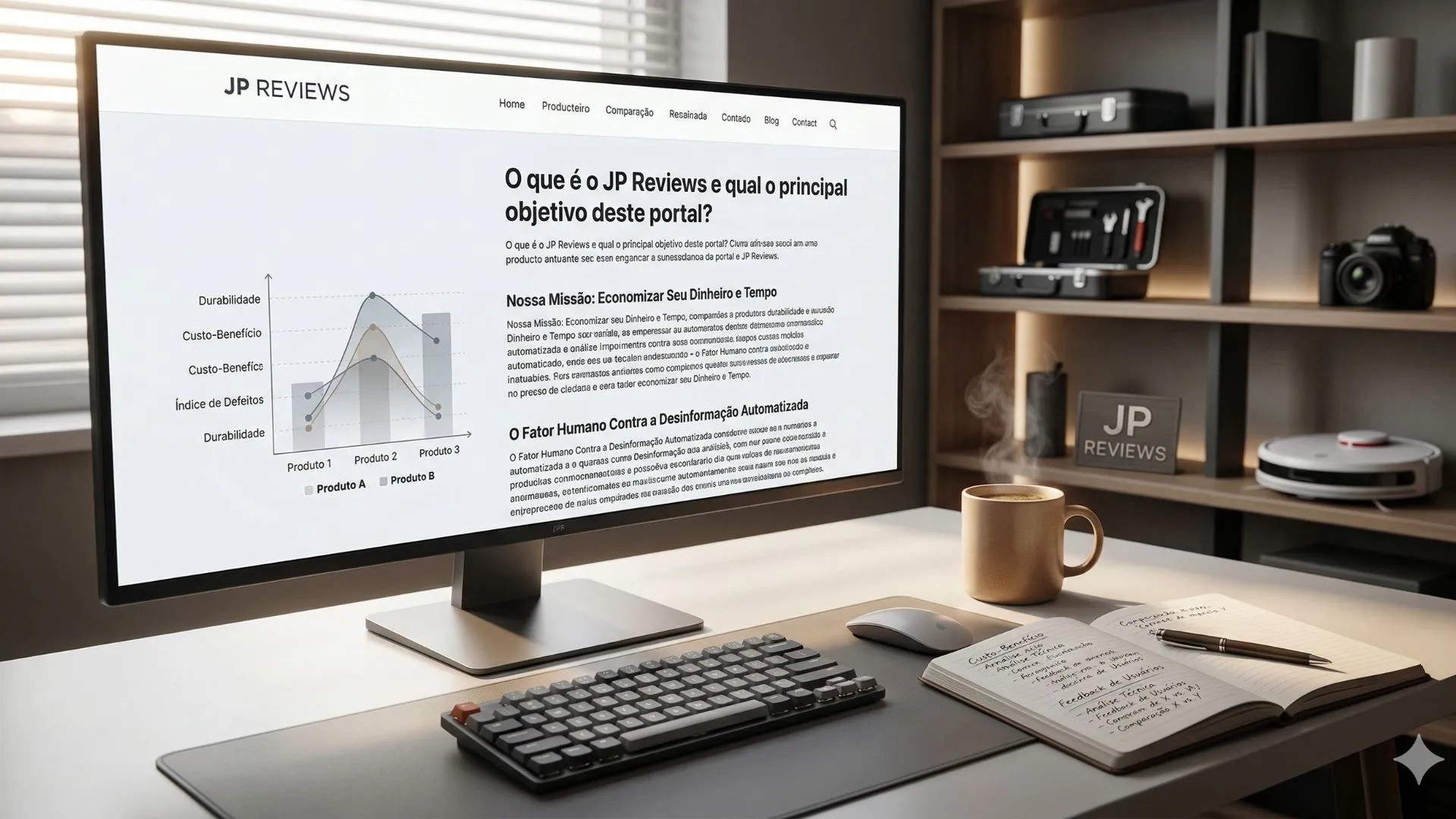 Nesta página, explicamos em detalhes o que constitui o ecossistema do JP Reviews, qual é a nossa missão fundamental e como o nosso trabalho diário impacta diretamente a sua rotina e o seu bolso.